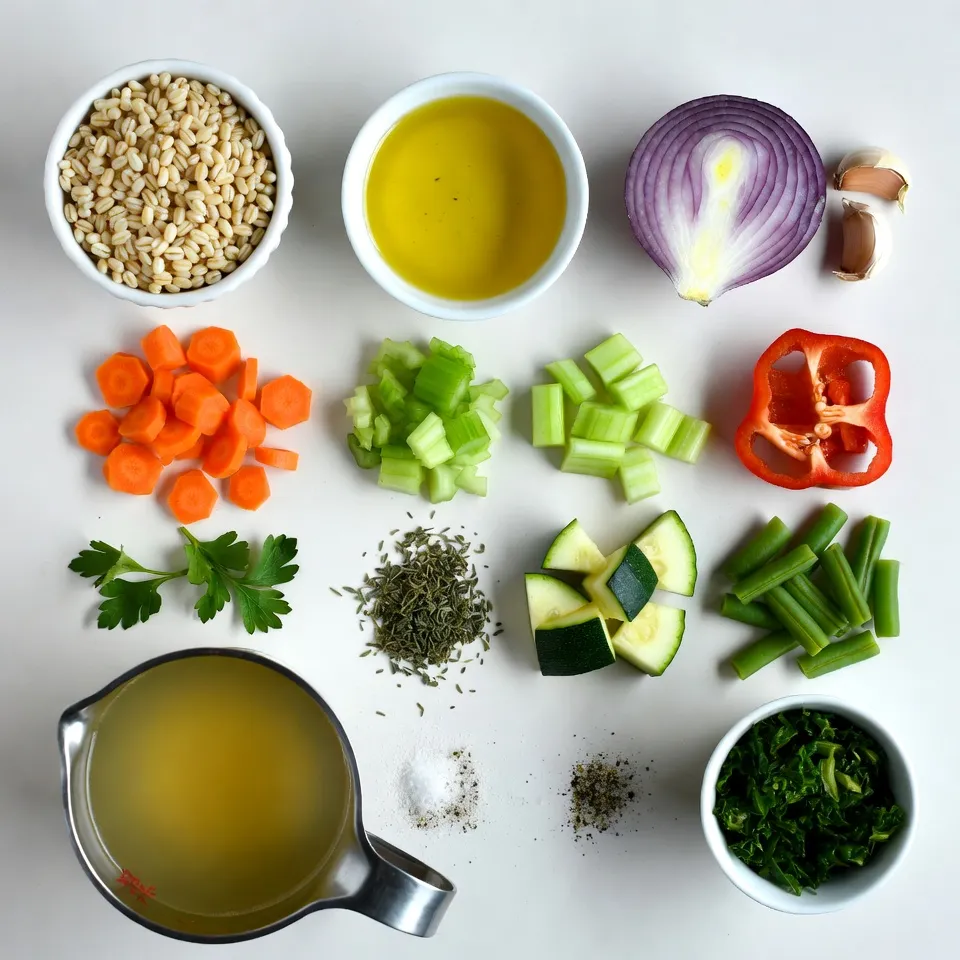 Jede Zutat bringt ihren eigenen Geschmack mit. Die Perlgerste gibt der Suppe eine nahrhafte Basis. Das Olivenöl sorgt für eine schöne Textur. Zwiebel und Knoblauch bilden die aromatische Grundlage. Das Gemüse bringt Farbe und Frische.