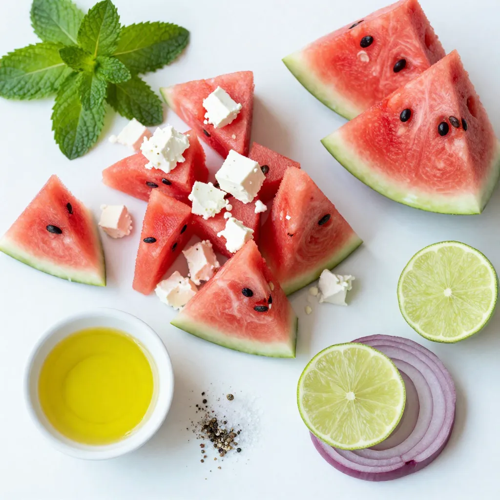 Zutatenliste für Wassermelonen-Feta-Minze-Salat