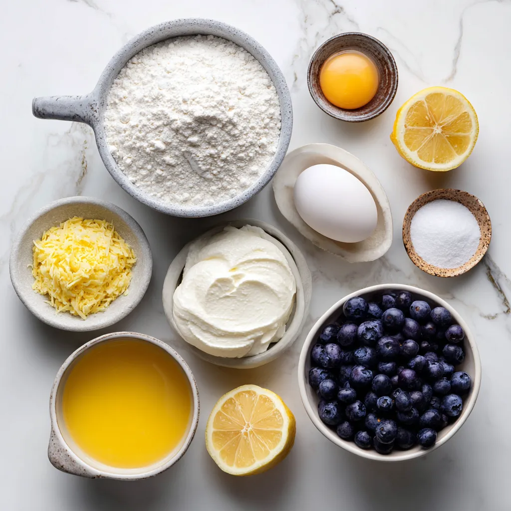 Hauptzutaten für Zitronen-Blaubeer-Ricotta-Pfannkuchen